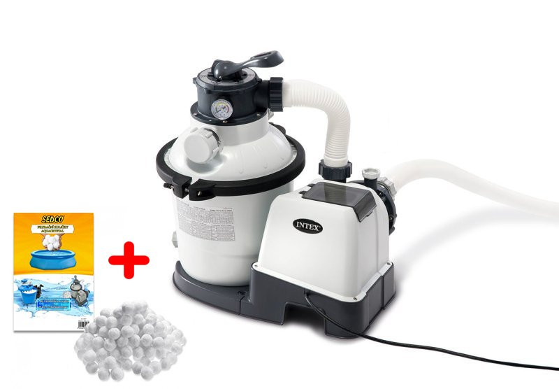 Popis: Filtr Intex, bazénová písková filtrace 2m3/h, 26642Bazénová písková filtrace Intex - popis: Bazénová písková filtrace INTEX 26642 2m3/h + DÁREK - FILTRAČNÍ KULIČKY 500g Písková filtrace od firmy INTEX pro nadzemní bazény. Filtrační zařízení se skládá z plastové podstavy, filtrační nádoby z polypropylenu beze švů, 6-ti cestného ventilu a čerpadla. Filtrační nádoba je propojena s čerpadlem flexibilní hadicí.