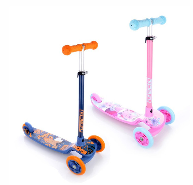 Popis: Scooter Tempish, koloběžka KOOKI, 3 kolečkaKoloběžka Tempish - popis: Koloběžka FunActiv KOOKI je ideální volbou pro nejmenší jezdce, kteří objevují svět na kolečkách. Díky stabilní tříkolové konstrukci a intuitivnímu zatáčení přenášením hmotnosti do stran si děti rychle osvojí rovnováhu i správnou koordinaci pohybu – a především si užijí spoustu zábavy. Stabilita a bezpečná jízda: Dvě přední PU kolečka o rozměrech 120×24 mm zajišťují výbornou stabilitu a snadné vedení směru. Zadní kolečko o velikosti 100×24 mm doplňuje pevnou konstrukci a přispívá k plynulé jízdě. Kvalitní ložiska ABEC-7 zaručují hladký a tichý chod, takže si děti mohou užívat komfortní svezení doma i venku. Roste spolu s dítětem: Lehká hliníková řídítka lze nastavit ve 4 výškových polohách (60, 65, 70 a 75 cm od země), takže koloběžka poroste spolu s vaším dítětem. Konce řídítek jsou navíc opatřeny zvýšenou ochranou proti mechanickému poškození, což prodlužuje jejich životnost i při častém používání. Odolná a praktická deska: Prostorná nášlapná deska o rozměrech 400×125 mm poskytuje dostatek místa pro pohodlný postoj. Povrch je potisknut speciální technologií, která zajišťuje dlouhotrvající vzhled – je odolnější vůči mechanickému poškození a zároveň se velmi snadno čistí. Specifikace: