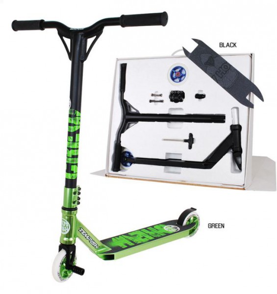 Popis: Miniscooter Tempish, hliníková koloběžka CREWMiniscooter - koloběžka Tempish - popis: Výborná koloběžka určená k freestylové jízdě. CREW - ideální stunt koloběžka připravená udělat všechny triky. Robustní konstrukce vysoko pevnostní sváry, vyztužené profily a základní materiál - slitina AL tř. 7000 zajistí vysokou odolnost i při nejnáročnějším využití. Atraktivní balení - připraveno pro self-assembling a self-design. Součástí balení je samostatně vložený griptape na základní desku, peg, arch nálepek pro individuální dokončení vzhledu, imbusový klíč pro finální sestavení. Složení je velmi jednoduché a zvládne jej každý během 10-ti minut! Hlavové složení: HIC Kolečka s AL jádrem, průměr 110 mm, tvrdost 90A, se zalisovanými vysoce kvalitními ložisky ABEC 9 chrome top speed, hi-precision s gumovými prachovkami Clamp: 4 šrouby Řídítka jsou vyztužená dvěma vzpěrami, šířka 54 cm, průměr 35 mm. Vidlice je CNC konstrukce z AL třídy 7000 Koloběžka je určena pro uživatele do 100 kg Stupeň únosnosti sportovního zatížení: 4 Materiál materiál AL 7000, spojení s deskou vyztuženo středovou výztuhou, vidlice: AL CNC konstrukce Náhradní kolečka naleznete v této kategorii: Náhradní kolečka na koloběžky