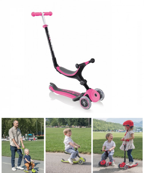 Popis: Scooter Globber, multifunkční koloběžka Go Up Foldable PlusKoloběžka Globber - popis: Vše v jednom – koloběžka pro batolata se sedadlem s patentovaným, přizpůsobivým systémem se mění z režimu pro jízdu v sedě s rukojetí pro rodiče, na odrážedlo a koloběžku. Režimy jízdy na odrážedle a v sedě s rodičovskou rukojetí jsou určeny pro děti ve věku 15 - 36 měsíců (s nosností 20 kg a požadavkem na min. výšku 75 cm) a režim koloběžky pro děti ve věku 3 - 7 let (s nosností 50 kg a požadavkem na min. výšku 110 cm). Go Up Foldable Plus koloběžka se sedadlem má odnímatelnou opěrku nohou se snadno odšroubovatelným knoflíkem pro bezpečnou a pohodlnou jízdu na koloběžce v jízdním režimu. Přepínejte mezi různými režimy kdykoli a kdekoli, díky patentovanému skládacímu systému bez použití nářadí. Koloběžka s měkkým sedadlem má 2 polohy a řídítka u koloběžky pro starší děti lze nastavit ve 3 výškách. Je vyrobena z velmi nízké kovové vyztužené konstrukce a dodává se s širokým, protiskluzovým kompozitním stupátkem pro bezpečnou jízdu. Proč kupovat 3 produkty, když je můžete mít v jednom? Související sortiment naleznete v kategorii HELMY, PŘILBY