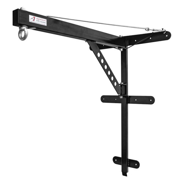 Popis: Závěs Apriori, držák pro box míč Šibenice - otočný, profiDržák APRIORI - popis: Kovové zavěšení pro box míč primárně vyrobené s kotvením na stěnu, tzv. šibenice. Pro montáž je třeba počítat s místem o šíři 2m a výšce 100 cm. Oko zavěšení ramene držáku je otočné. Konstrukce má sklopné rameno, které po sundání zavěšeného box míče, lze snadno sklopit ke stěně. Držák je dodáván jako rozebiratelná konstrukce. Jedná se o totožnou konstrukci (modelově nazvanou ŠIBENICE) jako je určena pro box pytle s tím, že rameno držáku pro box míč je delší a to skrze větší rozsah pohybu při cvičení s box míčem než je při cvičení s box pytlem. Nosnost je díky delšímu ramenu nižší. Tento držák rozhodně používejte pouze pro zavěšení box míče. Specifikace: