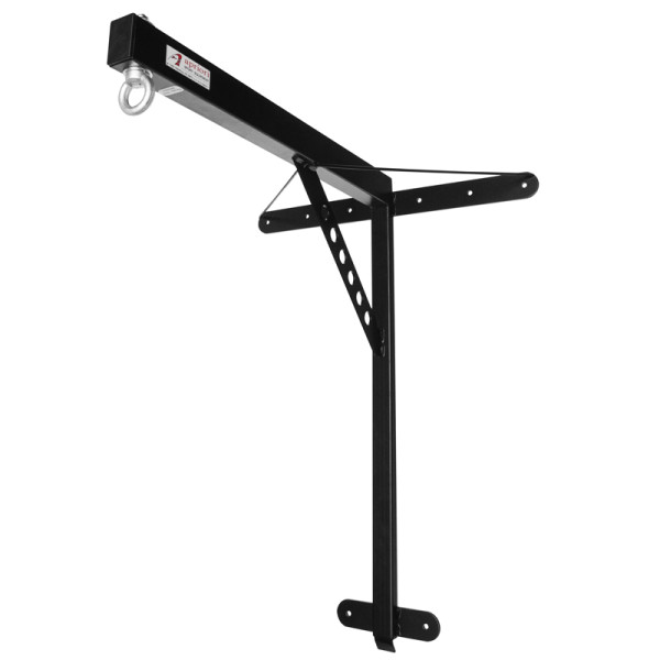 Popis: Horní závěs Apriori, na box pytel DRŽÁK ŠIBENICE standartDržák na box pytel Apriori - popis: Kovové zavěšení pro boxovací pytle primárně vyrobené s kotvením na stěnu, tzv. šibenice. Pro montáž je třeba počítat s místem o šíři 70 cm a výšce 90 cm. Oko zavěšení ramene držáku je otočné. Držák je dodáván jako nerozebiratelná konstrukce - viz vyobrazení - jako svařený nerozebiratelný komplet. Specifikace: