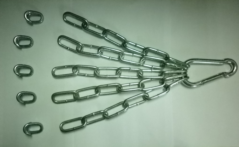 Popis: Řetěz Apriori, náhradní řetěz na box pytel o váze nad 60 kgŘetěz Apriori - popis: Náhradní řetězová sada na zavěšení boxovacího pytle, 5 - pramenů + centrální karabina. Dodávané včetně 5 ks komponent (nouzových článků) na připevnění sady k poutkům boxovacího pytle. Doporučeno pro boxovací pytle váhy přibližně nad 60 kg a 5 ks poutek. pozn.: doporučujeme, aby zavěšení b. p. obsahovalo prvek, který je otočný. Buď na držáku zavěšení nebo na spojení karabiny řetězové sady k zavěšení. V případě potřeby lze zakoupit tzv. REDUKCI | |||||||||||||||||||||