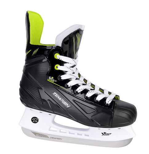 Popis: Brusle Tempish, ledové brusle VOLT–PROHokejové brusle Tempish - popis: Hokejové brusle TEMPISH VOLT-PRO jsou vhodné pro pokročilé aktivní hokejové hráče amatérských soutěží. Skelet brusle má jedinečnou konstrukci, je vyroben z jednoho kusu kompozitního odolného plastu, zajišťuje proměnnou tvrdost pro optimální fixaci nohy. Skelet je velmi lehký, přitom pevný a odolný. Dobře ochrání nohu proti nárazům puku a hokejek. Skelet je velmi dobře anatomicky tvarovaný, zejména v oblasti Achillovy šlachy a kotníků. Skelet poskytuje velmi dobrou podporu a ochranu kotníků. O pohodlí se starají pěnové výstelky, zejména v oblasti kotníků a Achillovy šlachy a anatomická vkládací vložka s latexovým potiskem, která kvalitně zafixuje chodidlo v brusli a zabraňuje klouzání nohy po vložce. Jazyk má anatomický tvar, je středně silně vyztužený s plastovým všitým plátem pro větší ochranu proti nárazům hokejek a puků. Jazyk je skládaný ze dvou dílů, čímž zaručuje komfortní obemknutí nártu, kotníku a spodní holeně. Brusle je vybavena voskovanými tkaničkami, díky kterým tkaničky velice dobře drží, lépe se utahují a nenasakují téměř žádnou vlhkost. Vnitřní materiál z mikrovlákna (CAMBRA brushed nylon), díky kterému noha v brusli neklouže, dodává jistotu pro bruslaře. Také efektivně odvádí vlhkost a dobře vysychá po skončení bruslení. Brusle je osazena kvalitním nožem z nerezavějící oceli. Holder je k brusli přichycený 10 ocelovými nýty a 4 měděnými nýty. Délka vnitřní vložky: vel.: 39 - 25,6 cm vel.: 40 - 26,1 cm vel.: 41 - 26,5 cm vel.: 42 - 27,2 cm vel.: 43 - 27,4 cm vel.: 44 - 28,0 cm vel.: 45 - 29,0 cm vel.: 46 - 30,4 cm vel.: 47 - 31,0 cm Specifikace:
