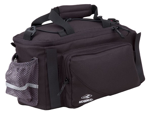 Brašna Konnix - popis: Taška na nosič se dvěma postranními kapsami,kapsa na láhev. Reflexní prvky, objem 6,4 l, váha 790g, rozměr 31x16x19 cm,