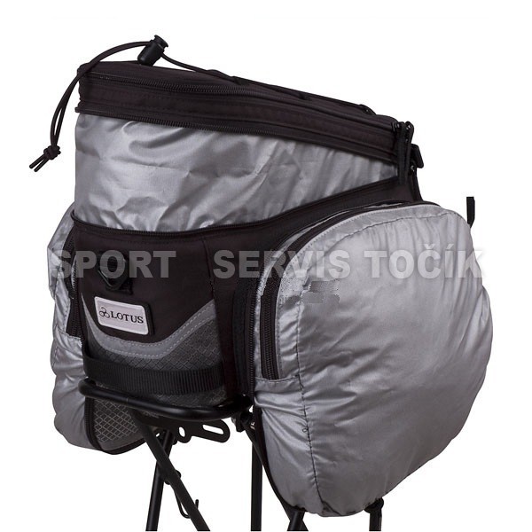 Popis: Brašna Lotus, brašna na nosič Top deluxe 706Brašna Lotus - popis: Brašna na nosič se dvěmi postraními kapsami, které mají měnitelný objem, 3M reflexní prvky, klip pro uchycení blikačky, objem 5,2 l / 13,2 l , hmotnost 790g, rozměr 35x18x21,5 cm, materiál 600D polyester + 420D nylon Rip-stop / 1000D Cordura Související sortiment nalezente v kategorii JÍZDNÍ KOLA. | |||||||||||||||||||||