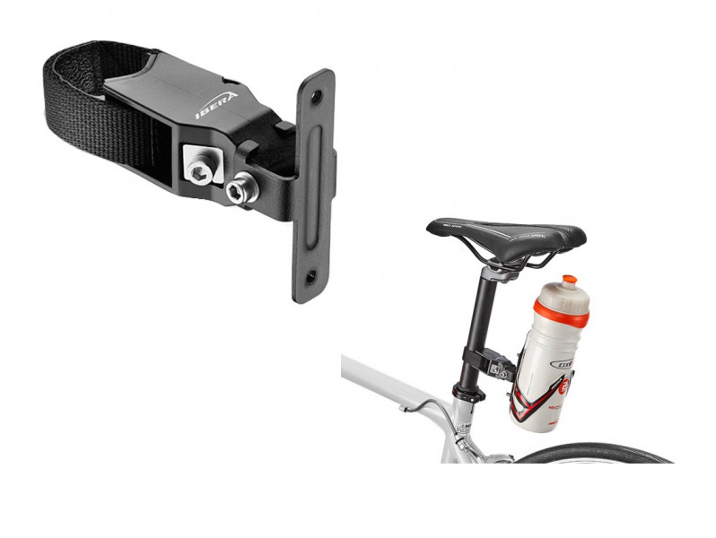 Držák Ibera - popis: držák košíku na láhve pro kola bez montážních otvorů na košík, protiskluzové pásky, hmotnost 66g,