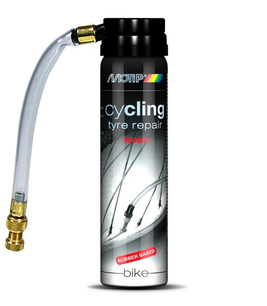 Opravovač Motip - popis: určeno pro jízdní kola a mopedy s duší i bez, redukce AV/FV,nahustí a současně zalepí.