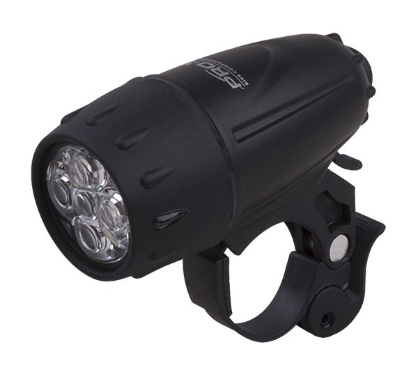 Popis: Světlo PRO-T, světlo přední 5 Ultra diod EcoSvětlo PRO-T - popis: Malé, ale přesto výkonné přední světlo s 5 jasně svítícími LED diodami. Lehké plastové tělo s gumovým zakončením pro ochranu a odolnost. Související sortiment nalezente v kategorii JÍZDNÍ KOLA | |||||||||||||||||||||