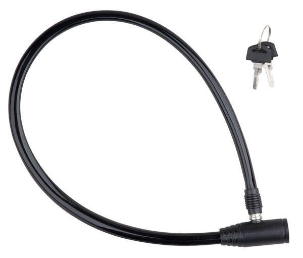 Zámek PRO-T - popis: Délka: 65 cm Průměr: 6 mm Materiál hlavy: plast Zamykání: klíč Vnitřní stavba: ocelové lanko