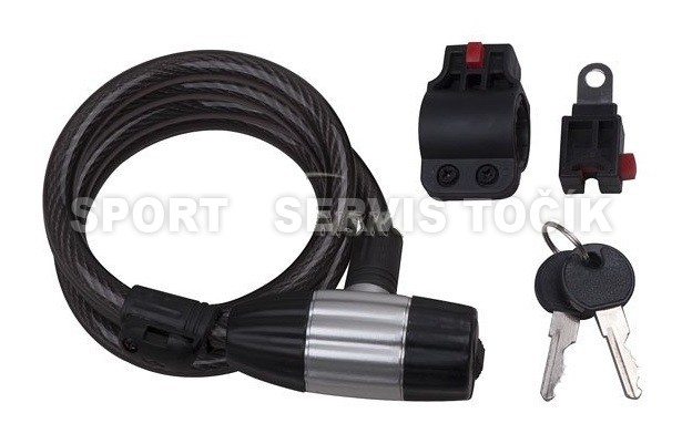 Délka: 120 cm Průměr: 10 mm Materiál hlavy: plast Zamykání: klíč Vnitřní stavba: ocelové lanko Uchycení: na sedlovku nebo šroubem