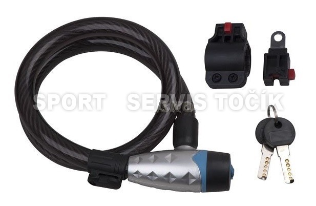 Délka: 80 cm Průměr: 15 mm Materiál hlavy: plast Zamykání: klíč Vnitřní stavba: ocelové lanko Uchycení: na sedlovku nebo šroubem