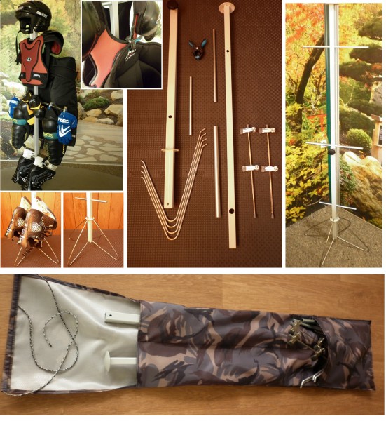 Popis: Stojan Apriori, sušák HOCKEY DRYER RACK 2D+ TRAVELSušák Apriori - popis: doprodej - omezené množství označení TRAVEL - sada včetně ochranného cestovního obalu Praktický dvoudílný víceúčelový sušák na výstroj, který lze použít i jako stojan - šetří vaše místo a výstroj může krásně větrat a schnout. Robustní ocelová konstrukce - ke složení není třeba nářadí. Jednotlivé díly se jen nasadí a zaaretují plastovým kolečkem se závitem, Snadno složíte i rozložíte. Výška sušáku je přibližně 155 cm. Součástí sušáku jsou ramínka se skřipci a kleštičky pro sepnutí kalhot k vestě a cestovní obal.