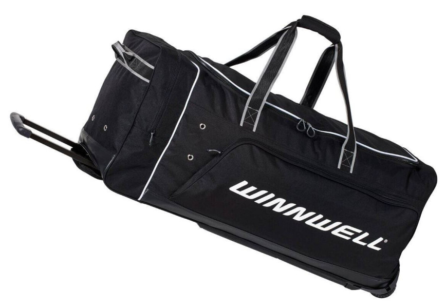 Popis: Taška WinnWell, taška Premium Wheel Bag s madlemTaška WinnWell - popis: Taška WINNWELL Premium Wheel Bag s madlem je kvalitní hokejová taška na kolečkách s teleskopickým madlem. Taška je určena pro všechny kategorie hráčů, včetně těch nejnáročnějších hokejových profesionálů. Terénní kolečka a madlo zaručují pohodlnou přepravu i na delší vzdálenosti. Taška WINNWELL Premium Wheel Bag s madlem je kvalitní taška z odolného materiálu (polyesteru), která má kvalitní a pevné madlo, kvalitní dvojitý zip, boční kapsy a vnitřní kapsu tvořenou PVC tkaninou. Základním materiálem je velmi pevný a odolný nylon/polyester, odolné zipy a spodní dno tašky je zpevněno plastovými lyžinami. Taška je vybavena terénními, velmi odolnými kolečky, které jedou i po méně kvalitním povrchu a systémem teleskopické rukojeti. Pro přenos v ruce na kratší vzdálenosti má taška dva klasické úchyty, které lze spojit páskem na suchý zip. Specifikace: