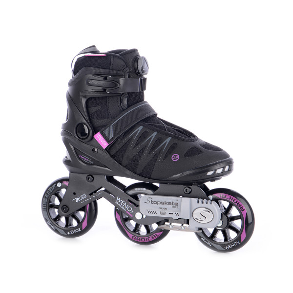 Popis: In line Tempish, dámské brusle WENOX TOP EBS LADY 100Brusle Tempish - popis: Brusle jsou vybaveny revolučním elektromechanickým brzdícím systémem ovládaným bezdrátovým ovladačem. Brždění na těchto bruslích je nyní komfortnější, bezpečnější, jednodušší a efektivnější oproti klasické brzdě umístěné za zadním kolečkem! Tento model s brzdou EBS se doporučuje pro uživatele s váhou do 90 kg. Atraktivní inline brusle určená pro aktivní fitness bruslaře spojuje všechny současné moderní technologie a trendy ve fitness bruslení. Brusle je určena pro pokročilé a zkušené bruslaře. Velmi pevný podvozek pro 3 kolečka o maximální velikosti 100 mm umožní bruslit velmi rychle a pohodlně i na delší vzdálenosti. Podvozek je poměrně krátký, což zvyšuje obratnost brusle a snadnější ovládání při bruslení na místech, kde je potřeba častěji měnit směr jízdy a brusle je tím velmi hravá a zábavná. Pohodlný liner je dvouvrstvý. Tvrdší vnější vrstva drží pevně chodidlo ve skeletu, zatímco měkčí vnitřní vrstva obemkne jistě chodidlo, čímž se docílí pocitu vysokého komfortu a bezpečného ovládání brusle. Pro větší bezpečnost bruslařů jsou na brusli reflexní prvky zvyšující jejich viditelnost za tmy a při zhoršené viditelnosti. Pevný skelet je odvětrán přes podešev a vzduch je rozváděn vkládací stélkou pod celým chodidlem. Moderní „TEMPISH Lacing systém“ umožní rychlé dotažení a uvolnění brusle. Dotažením nártového pásku a horní přezky na límci brusle si každý uživatel může sám nastavit optimální pozici chodidla ve skeletu, ideální a komfortní ovládání brusle. Oska průměr 6 mm/28 mm. pozn.: Brusle jsou vybaveny revolučním elektromechanickým brzdícím systémem ovládaným bezdrátovým ovladačem. Brždění na těchto bruslích je nyní komfortnější, bezpečnější, jednodušší a efektivnější oproti klasické brzdě umístěné za zadním kolečkem! Tento model s brzdou EBS se doporučuje pro uživatele s váhou do 90 kg. Více informací o tomto patentovaném českém výrobku najdete na adrese: www.stopskate.com Délka vnitřní vložky: