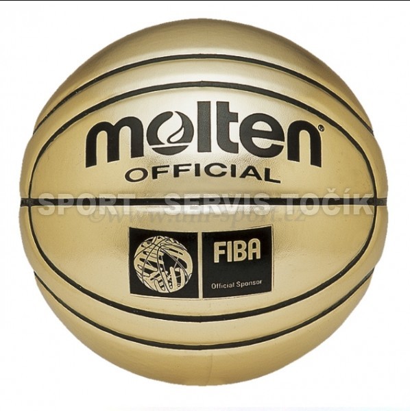 Basketbalový míč Molten - popis: basketbalový míč, zlatý, syntetická kůže, vhodný jako dárek, dekorace, ocenění; vel. 7