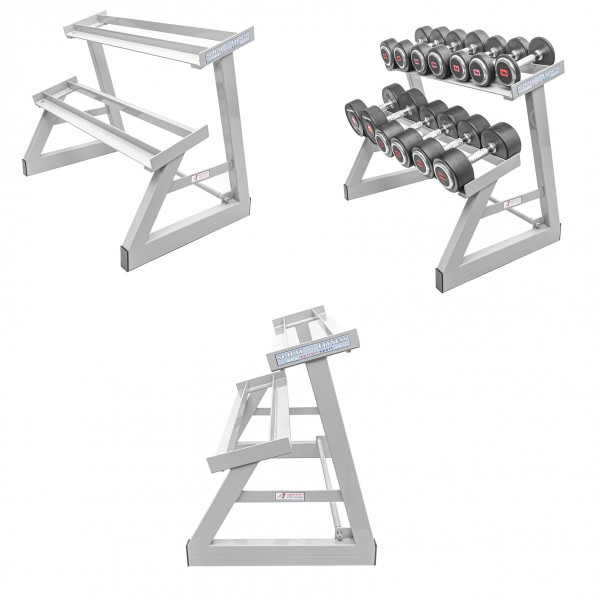 Fitness stojan Apriori - popis: Masivní ocelová konstrukce zaručuje stabilitu i při plném obsazení posilovacími činkami - jednoručkami. Minimální rozměry stojanu šetří místo a stojan umožňuje udržovat posilovnu řádně uklizenou. Standartně je stojan dodáván s tím, že bude celá základna položena na podlaze (na koberci, tvrdé PVC podlaze, tatami apod.) V případě potřeby je možno na stojan namontovat např. pojezdová kolečka nebo gumové podpěry. Pro tyto účely jsou zespodu základny vyvrtány 4 otvory.