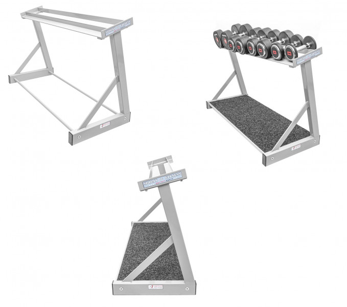 Popis: Držák Apriori, STOJAN COMBI NA ČINKY A KETTLEBELLFitness stojan Apriori - popis: Masivní ocelová konstrukce zaručuje stabilitu i při plném obsazení posilovacími činkami - jednoručkami a kettlebell. Minimální rozměry stojanu šetří místo a stojan umožňuje udržovat posilovnu řádně uklizenou. Na horní patro stojanu lze nandat jednoručky a pod ně na polici váhový mix kettlebell. Standartně je stojan dodáván s tím, že bude celá základna položena na podlaze (na koberci, tvrdé PVC podlaze, tatami apod.) V případě potřeby je možno na stojan namontovat např. pojezdová kolečka nebo gumové podpěry. Pro tyto účely jsou zespodu základny vyvrtány 4 otvory. Specifikace: