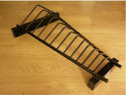 - stojan s 14-ti příhrádkami pro fitness kotouče - závaží (12x přihrádka + 2x držák zpředu stojanu)