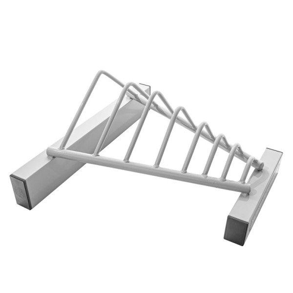 Fitness stojan Apriori - popis: Masivní ocelová konstrukce stojící na vyvýšené podstavě, což zaručuje maximální stabilitu i při jeho plném obsazení kotouči. Jeho minimální rozměry tak šetří místo a stojan umožňuje udržovat posilovnu uklizenou. Primárně vyrobeno pro užití 2 ks, t.j. např. na každé straně bench lavicee budou všechny potřebné váhy kotoučů při ruce a nemusíte pobíhat při změně váhy s kotouči po posilovně. Na 1 stojan lze nandat kotouče 1ks od váhy, např.: 1,25, 2,5, 5, 10, 15, 20 a 25 kg. V případě potřeby je možno na stojan namontovat např. pojezdová kolečka nebo gumové podpěry. Pro tyto účely jsou zespodu základny vyvrtány 4 otvory.