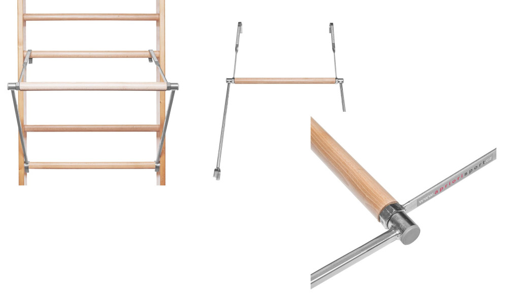Popis: Hrazda Apriori, závěsná fitness HRAZDA KLOUB, tyč bukHrazda Apriori - popis: Fitness hrazda KLOUB je jednoduchá univerzální hrazda pro posilování zádových partií, ramen a paží za pomoci přítahů. Tento model je vyroben pro zavěšení na ripstol. Oproti provedení STANDARD nebo PROFI lze u tohoto modelu snadno měnit její výšku od podlahy. Změníte-li na ripstoli pozici spodní opěry nahoru nebo dolů, tyč hrazdy zvýšíte nebo snížíte. Tato hrazda je vhodná pro veškeré ripstole kovové i dřevěné o průměru šprušle přibližně od 25 mm (kulaté nebo v případě oválné se jedná o předo-zadní rozměr). Vhodná pro dřevěné žebřiny o šířy 60, 70, 80 a 90 cm (měřeno jako vnější rozměr žebřin) a pro veškeré kovové žebřiny od šíře 60 cm. !!! UPOZORNĚNÍ !!! Skrze ideální zatížení šprušlí žebřin při cvičení, musí být hrazda zavěšena co nejblíže k bočnicím ripstole. Proto je důležité vybrat příslušnou šíři hrazdy (příklad: pro žebřiny o obchodní šíři 80 cm - měřeny vně bočnic, vybírejte hrazdu o obchodní šíři 80 cm - je kompatibilní s vnitřní šířkou žebřin) Specifikace: