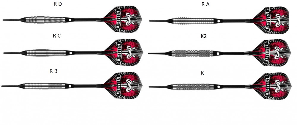 Popis: Šipky Harrows, šipky Assasin, softip, 18g