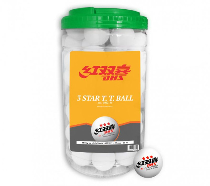 Míčky DHS - popis: Výhodné velké balení, pro tréninkové i profesionální použití. Dodáváno v dóze po 36 ks.