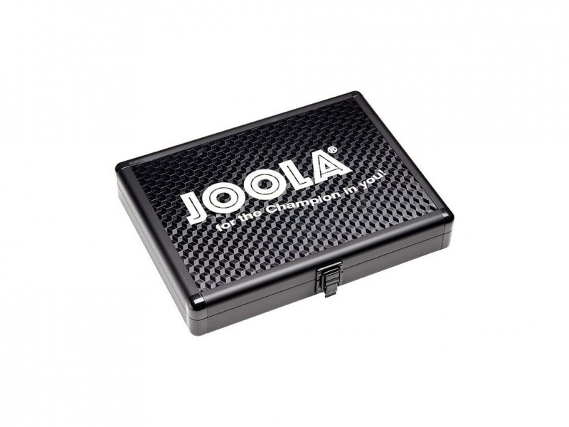 Kufřík Joola - popis: Kufřík vyrobený z hliníku ve stříbrné barvě. Uvnitř polstrován molitanem, místo na jedno pálku a dva míčky.