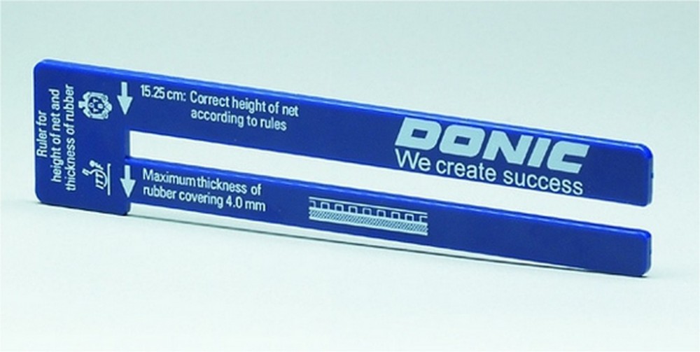 Síťka Donic - popis: Měrka na měření výšky síťky.