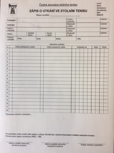Zápisy Sten marketing - popis: Oficiální zápisy k utkání vydané Českou asociací stolního tenisu.