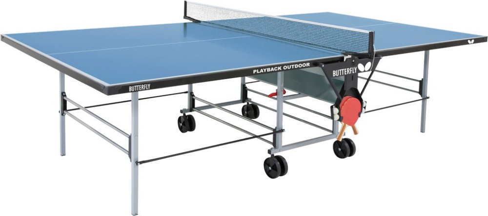 Popis: Stůl Butterfly, stůl na stolní tenis Playback Rollaway OutdoorStůl na stolní tenis Butterfly- popis: Venkovní stůl s deskou o síle 5 mm, na 4 kolečkách. Vrchní deska je vyrobena ze speciálního melaminu a tudíž odolná proti slunci, dešti, mrazu a poškrábání. Bezpečnostní atest, odpovídá předpisům EU. Specifikace: