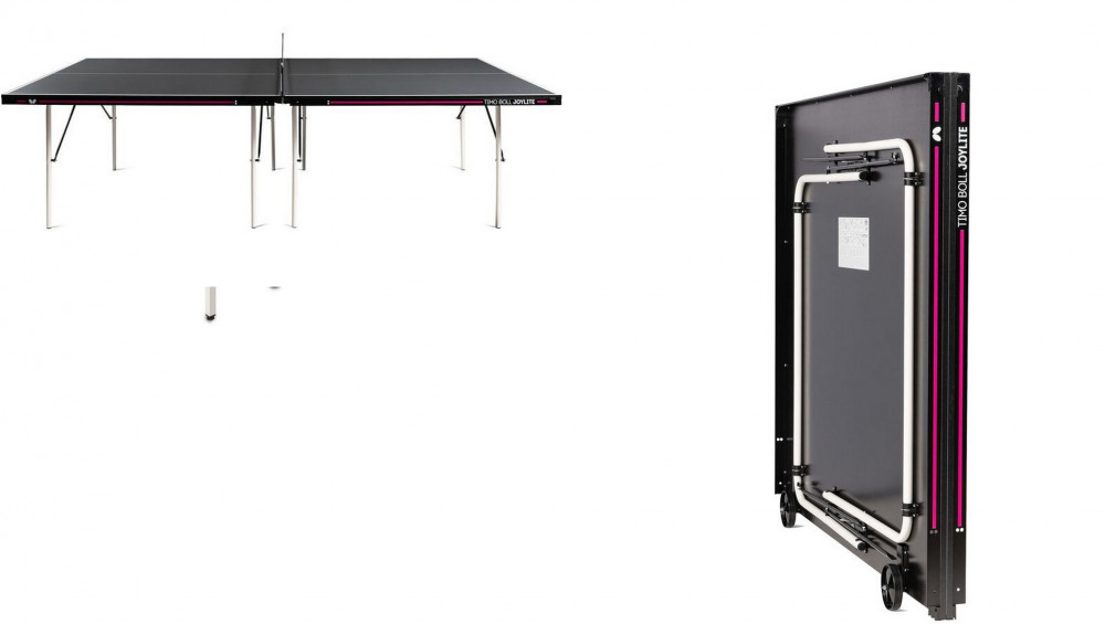 Popis: Stůl Butterfly, stůl na stolní tenis Boll JoyliteStůl na stolní tenis Butterfly - popis: Vnitřní stůl na stolní tenis Butterfly. Vrchní deska vyrobena z dřevotřísky o síle 16 mm v šedé barvě. Deska je vyztužena černým rámem o síle 36 mm. Stabilní nohy o průměru 25 mm. Na boku každé desky jsou umístěna 2 kolečka pro případný transport. Síťka Start s černou síťovinou. Specifikace: