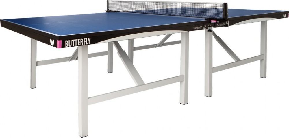 Popis: Stůl Butterfly, stůl na stolní tenis Europa 25, interierStůl na stolní tenis Butterfly - popis: Špičkový stůl s deskou 25 milimetrů a perfektním povrchem pro optimální a pravidelný odskok míčků. Deska je vyztužena rámem zabraňujícím prohnutí či zkroucení. Specifikace: