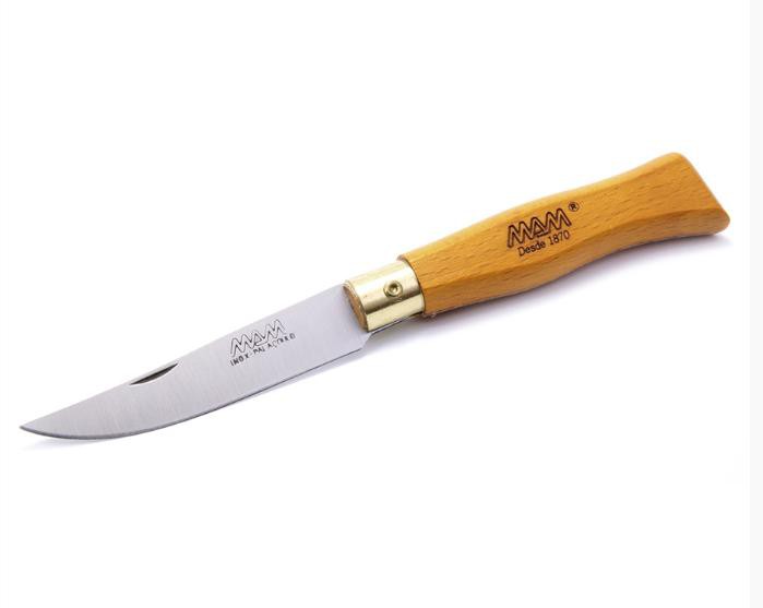 Popis: Kudla MAM, kapesní zavírací nůž Douro 2007 - buk, 9 cmNůž MAM - popis: kvalitní nůž nejen pro opravdové muže Parametry: Značka portugalského výrobce nožů MAM byla založena roku 1870 Manuelem Antonio Martinsem. Na jeho práci ve firmě nyní navazuje již 5. generace rodiny. Jedná se tedy o rodinný podnik se silným odkazem na tradici. Výroba probíhá přímo v Portugalsku a stále obsahuje vysoký podíl ruční práce. Kvalitu nožů MAM podtrhuje i fakt, že výrobce na své produkty nabízí 10 let záruku. Jednotlivé výrobní postupy a některá konstrukční řešení jsou chráněna patenty. Unikátní je např. pojistka zavíracích nožů, která je velmi funkční a spolehlivá. Ocel pro výrobu nožů pochází z Německa. Aby dosáhla co nejlepších vlastností, obsahuje navíc prvky jako křemík, karbon, molybden a vanadium. Její tvrdost pak dosahuje 57 – 59 stupňů Rockwellovy stupnice. Dřevěná rukojeť zavíracích nožů dodává uživateli do ruky specifický pocit naprosto odlišný od nožů s rukojetí plastovou. Nejčastěji se k výrobě používá buk. Velmi oblíbená je ale i exotičtější bubinga se svou tmavě hnědou až červenou barvou a v nabídce nechybí ani hladká oliva. Související sportovní sortiment naleznete v kategorii Sportovní bundy | |||||||||||||||||||||