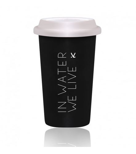 Hrnek Hiko - popis: Keramický hrnek IN WATER WE LIVE se silikonovým víčkem.