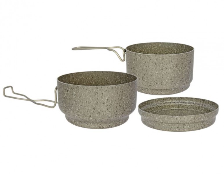 Popis: Nádobí Var, hliníkový EŠUS - antiadhez STONE, trojdílnýTuristické nádobí - popis: Moderní varianta klasického „armádního“ ešusu v designu WOOD. Nádobí se skládá ze tří dílů (velká miska, malá miska, víčko). Sada je vyrobena z hliníku, který má po obou stranách tenoulinkou vrstvu PTFE (tedy teflonu) a v dřevěném designu. Hlavní a nezpochybnitelnou předností PTFE je nenáročná údržba a pohodlné vaření – pokrm se snadno připraví a nepřipaluje. Velká miska Ø 153 mm - 1,25 L Třídílné nádobí Související sortiment naleznet v kategorii TURISTICKÁ OBUV | |||||||||||||||||||||