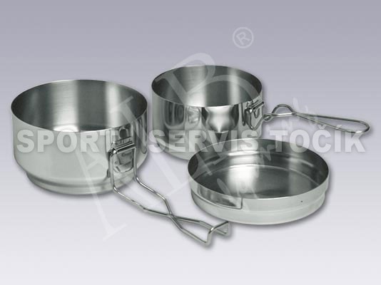 Popis: Nádobí Var, nerezové EŠUS, trojdílnýNádobí Var - Alb - popis: Nádobí je vyrobeno z kvalitního nerezu CrNi 18/10 s povrchem vně leštěným a uvnitř broušeným. Velká miska Ø 133 mm - 1,25 L Malá miska Ø 153 mm - 0,85 L Víčko Ø 158 mm - 0,30 L Vše vhodné na otevřený oheň, plynový a elektrický vařič Související sortiment naleznet v kategorii TURISTICKÁ OBUV | |||||||||||||||||||||
