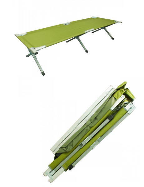 Lehátko Highlander - popis: Skládací kempinkové lehátko s pevným, odolným a lehkým hliníkovým rámem je vhodné pro delší pobyt mimo domov a do kempu. Lehátko má pevné, ocelí vyztužené nohy, které zajišťují dobrou stabilitu pro pohodlný spánek. Dodáváno včetně praktické tašky na přenášení.