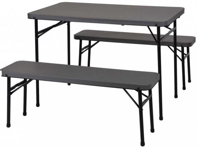 Popis: Stabilní a odolný skládací kempinkový nábytek. Souprava stolek a 2 lavice.