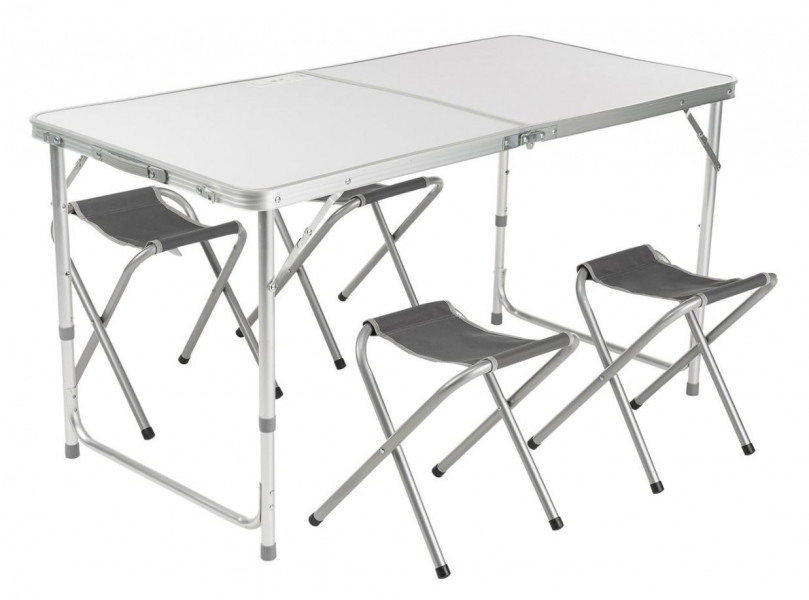 Popis: Stůl Loap, camp stůl + židle HAWAII CAMP SET, setCamping set Loap - popis: Rozkládací sadu LOAP HAWAII CAMP SET tvoří stůl a 4 židličky. Stůl z lehké hliníkové konstrukce (25 × 0,8/22 × 0,8 mm) má nosnost 30 kg. Desku tvoří 5 mm silný materiál, který je velmi odolný a snadno se udržuje. Pod desku se dá připevnit odkládací síť s kapsou. Rozměry stolu (výška × šířka × hloubka) jsou 120 × 60 × 55 cm. Dá se složit do přenosného kufříku s držadlem. Ocelové židličky (19 × 0,8 mm) mají nosnost 105 kg a omyvatelný polyetylenový povrch na sezení. Sada je ideální na kempování čtyřčlenné rodiny. Celé balení váží 6,5 kg. Specifikace: