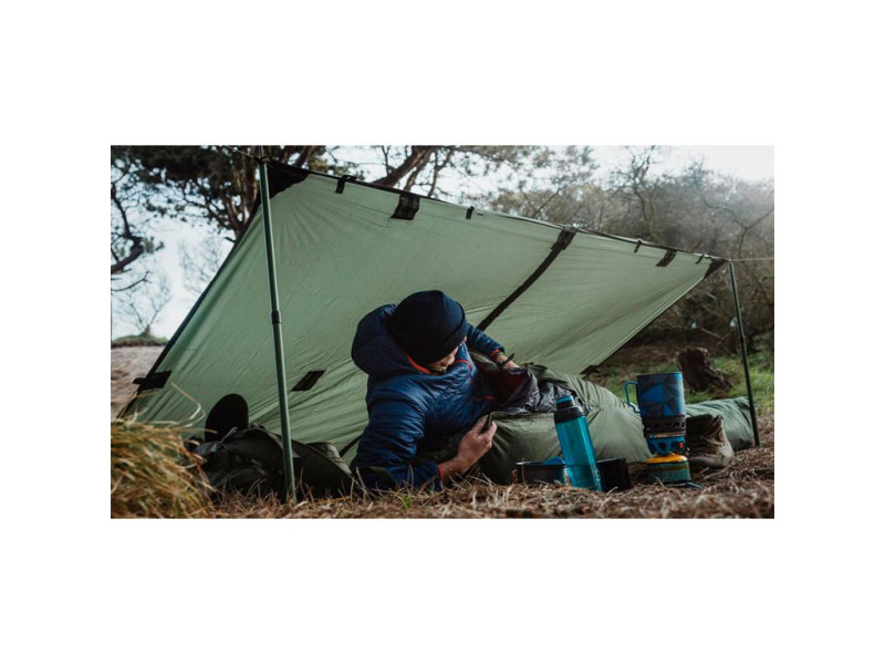 Plachta bivak TrekMates - popis: Velká voděodolná plachta, kterou lze natáhnout přes šňůru nebo napnout na tyčky. Zesílené švy okolo háčků, očka, upínací druky pro spojení více plachet. Odolnost proti vodě: 2000 mm. Šňůry a tyčky nejsou součástí výrobku.