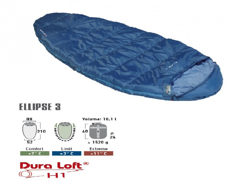 Popis: Spacák High Peak, spací pytel Ellipse 3Spací pytel High Peak - popis: doprodej - omezené množství Oválný spací pytel Ellipse 3 s náplní Dura Loft H1 nabízí maximální pohodlí a dostatek vnitřního prostoru. Dura Loft je směs umělých dutých vláken, která slouží jako výplň a zateplení spacáků High Peak. Výplň Dura Loft vyniká svými termoizolačními vlastnostmi, zajišťuje vysoký stupeň tepelné izolace, a to i při vysoké venkovní vlhkosti. Rychleschnoucí a nízko údržbová výplň Dura Loft je vhodná i pro alergiky. Zapíná se na zip s oboustrannými běžci a díky klopě se samovolně nerozevírá. Ideální teploty pro tento spací pytel se pohybují kolem 7°C, proto ho výborným společníkem na kempování. Specifikace: