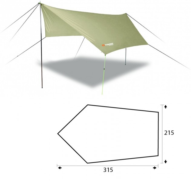 Outdoor přístřešek Trimm - popis: Lehký jednoplášťový přístřešek pro nenáročné turisty, rybáře, trampy a cyklisty. Neslibuje komfort jako klasický stan, ale jeho jednoznačnou výhodou je nízká hmotnost a snadná stavba s využitím teleskopických trekových holí.
