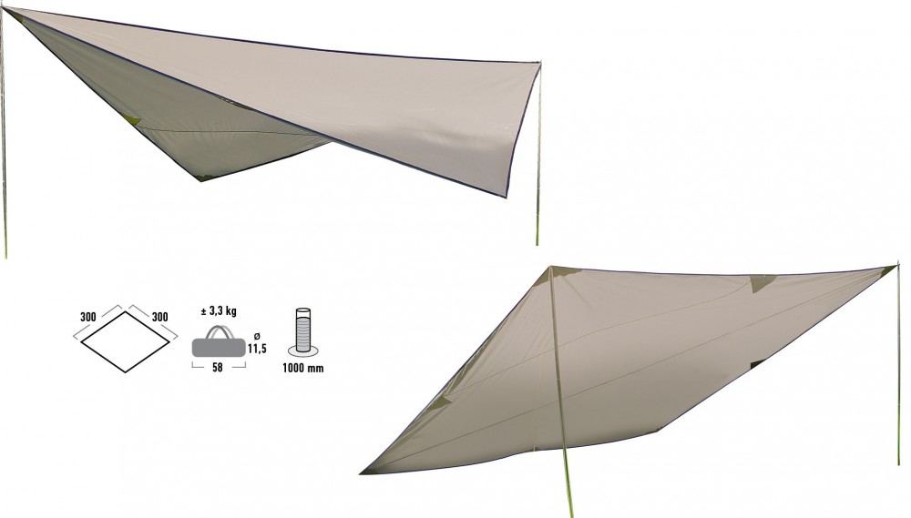 Popis: Přístřešek High Peak, sluneční clona Tarp 1Plážový přístřešek High Peak - popis: Tarp Size 1 je variabilní sluneční clona o rozměrech 300x300 cm. Clona je ušita z prodyšné polyethylenové tkaniny. Vodní sloupec 1000 mm. Specifikace: