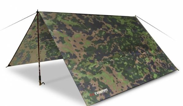 Outdoor přístřešek Trimm - popis: Lehký jednoplášťový přístřešek pro nenáročné turisty, rybáře, trampy a cyklisty. Neslibuje komfort jako klasický stan, ale jeho jednoznačnou výhodou je nízká hmotnost a snadná stavba s využitím teleskopických trekových holí.