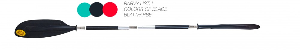 Plastové pádlo pro kajak - popis:  vyrábí se ve 3 základních barvách: modrá, červená, černá.