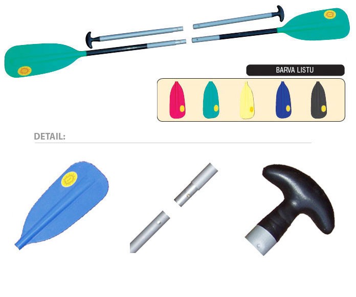 - kombinace plastových pádel: 2x kanoe nebo 1x kajak