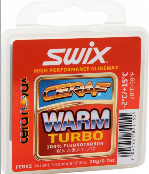 Popis: Vosk Swix, pevný vosk WARM TURBO, FC6XS, -2°C/ +15°CVosk Swix - popis: 100% fluorokarbon, pevný vosk. Solid Cold Turbo +2°C až -15°C. Vylepšený pro použití ve všech sněhových podmínkách. Lze použít samostatně nebo jako poslední “zrychlovací” vrstva. Související sortiment naleznete v kategorii BĚŽECKÉ LYŽE DÁREK - jako dárek nabízíme níže uvedené slevy spojenou s nákupem tohoto produktu. Napište do poznámky jaký dárek jste vybrali. Nenapíšete-li do poznámky nic, žádná z nabídnutých variant nebude poskytnuta. Máte možnost vybrat pouze jednu z variant: