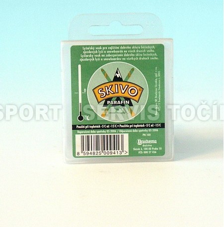 Popis: Parafín Skivo, skluzný vosk - Parafín, zelený (-15 až -5°C ), 1 ksParafín Skivo - popis: Zajišťuje dobrý skluz běžeckých a sjezdových lyží, snowboardů na sněhu při teplotě -5°C až -15°C. Nutno zažehlit, vystěrkovat a vykartáčovat. Balení: uzavíratelná PE krabička o obsahu 40g. Související sortiment naleznete v kategorii SJEZDOVÉ LYŽE | |||||||||||||||||||||